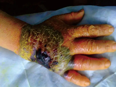 坏疽性蜂窝织炎手部坏死结黑痂图