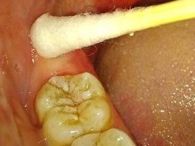 智齿冠周炎患者磨牙后区萌出第三个磨牙周围牙龈组织肿痛甚至溃烂发白,多是由于阻生等原因导致其萌出不全,形成牙周袋,牙周袋内容易积存食物及细菌导致。