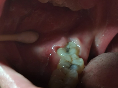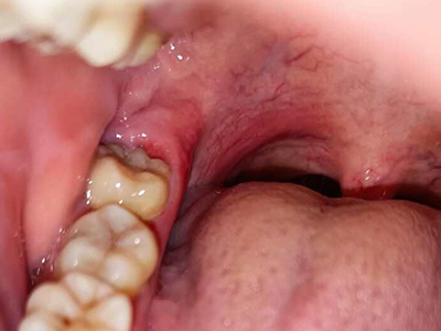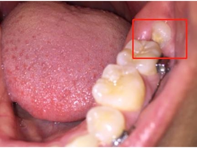 智齿冠周炎左下智齿牙龈红色肿胀图