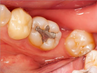 发生智齿冠周炎的智齿周围牙龈出现肿胀、发白,且牙龈脆性增加,刷牙或咀嚼时容易出现边缘出血。同时,因智齿牙位不正,导致邻牙龋坏发黑。
