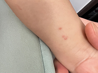 单纯疱疹小孩胳膊皮肤上出现三个小水疱,如米粒大小,顶端光滑有光泽,疱液浑浊,突出于皮肤表面,周围有红晕围绕,可逐渐自行吸收。