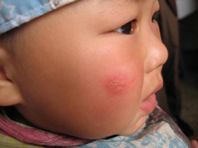 单纯疱疹表现为患儿面部眼睛下有数个圆锥形隆起的红色小疙瘩,表皮破溃后渗液,患者自觉有刺痛感。初期疱液清亮,之后逐渐变混浊,但至半月左右可自行吸收。