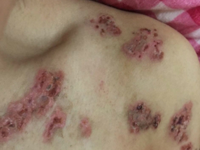 单纯疱疹后背上有多个大块红斑伴丘疹图