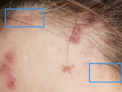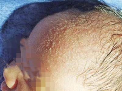 单纯疱疹头部起了好多个红斑伴多个红褐色痂皮图