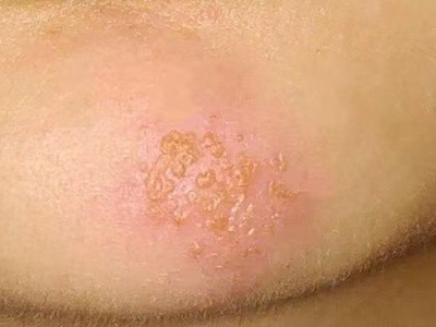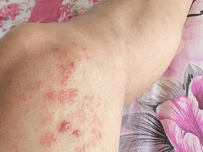 单纯疱疹腘窝长了很多红红的丘疹伴结痂图