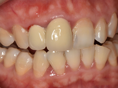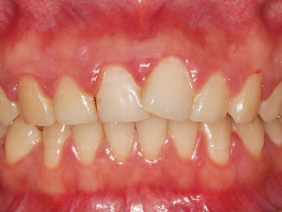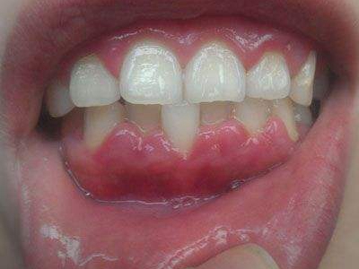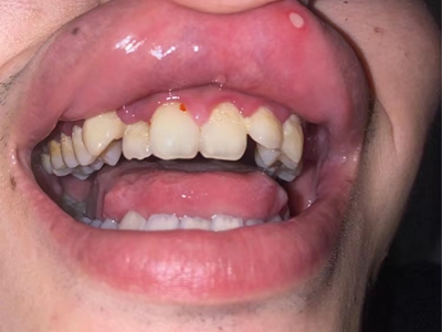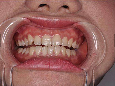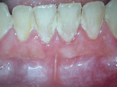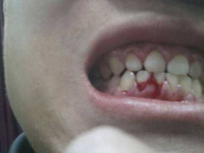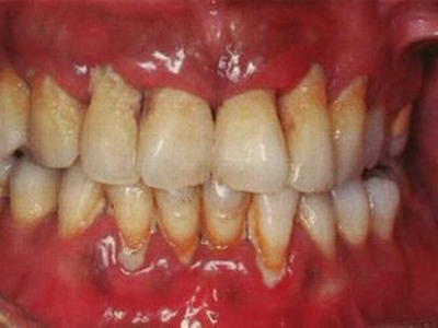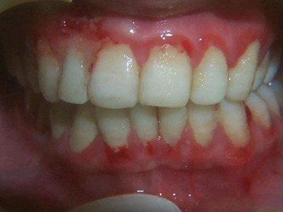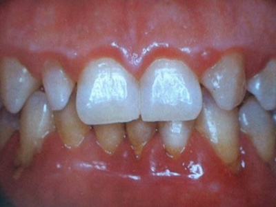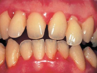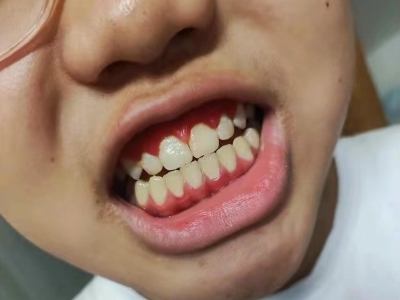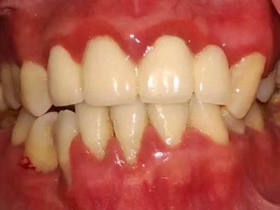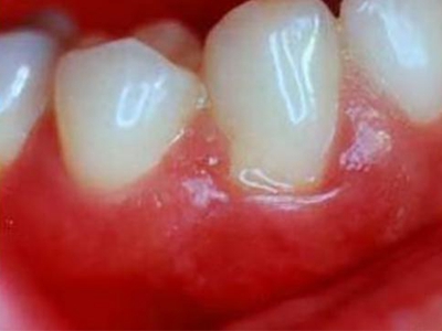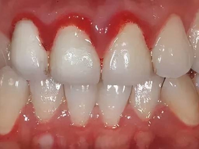 慢性龈炎的病损部位一般局限于游离龈和龈乳头,以前牙区为主,尤其以下前牙区最为显著,患者常因刷牙或咬硬物时牙龈出血而就诊。游离龈和龈乳头颜色变为鲜红或暗红色,病变较重时炎性充血可波及附着龈。龈缘变厚,龈乳头圆钝肥大,可增生呈球状,覆盖牙面。牙龈松软脆弱,缺乏弹性。