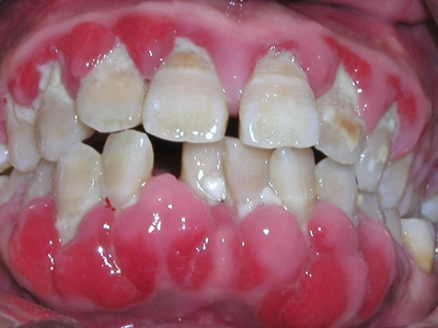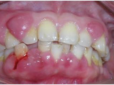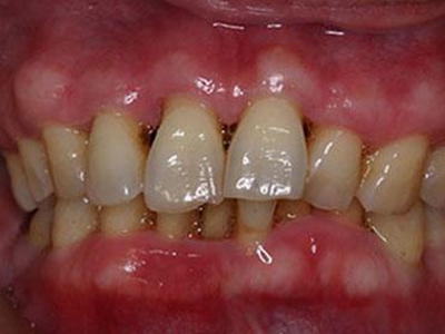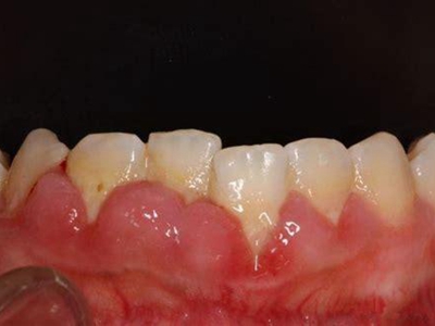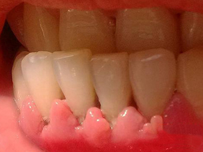 当牙龈以增生性反应为主时,龈缘和龈乳头呈坚韧的实质性肥大,质地较硬而有弹性。龈沟液量增多,还可能出现龈沟溢脓现象。