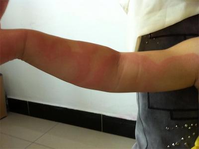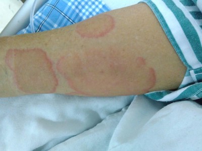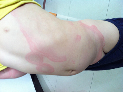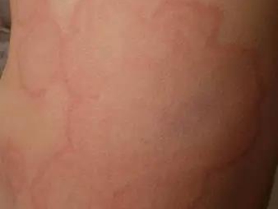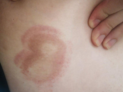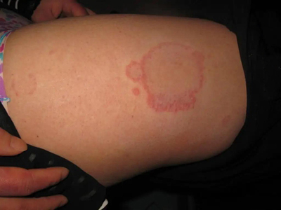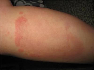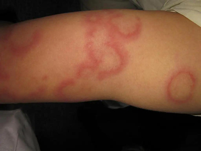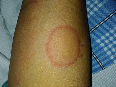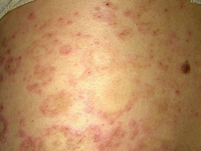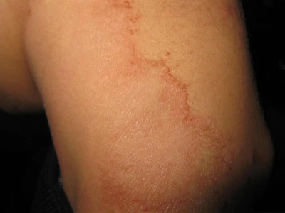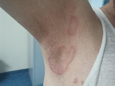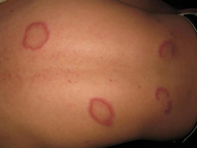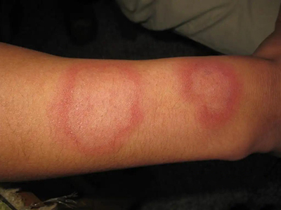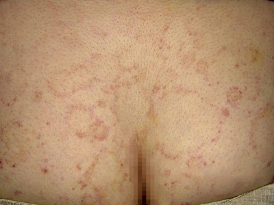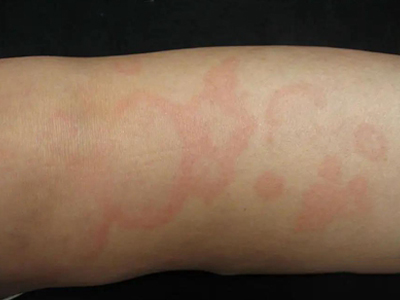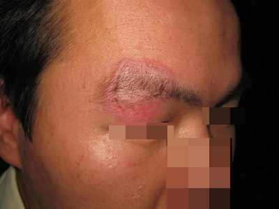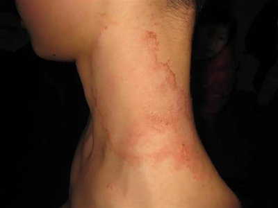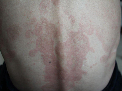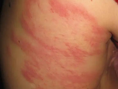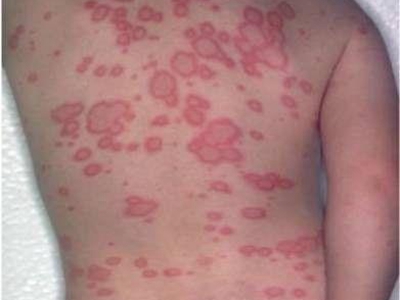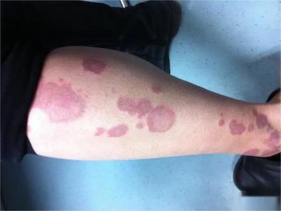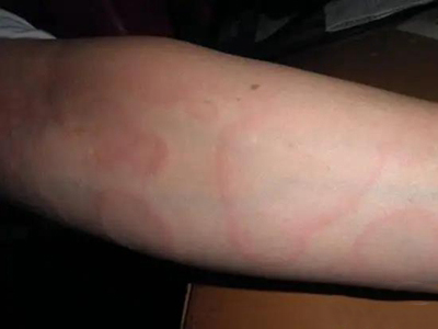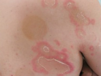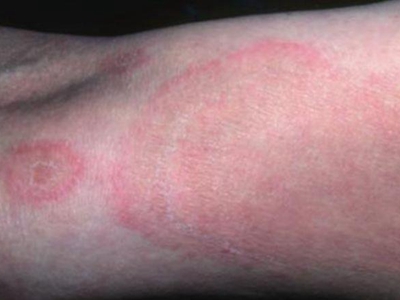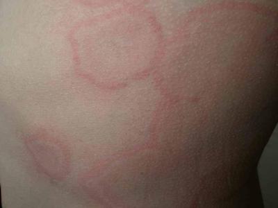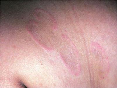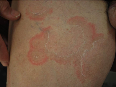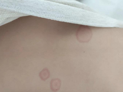 离心性环形红斑的症状为皮肤有环形红斑,分布在眉尾处,呈离心性扩大,直径约2cm。皮损的外围呈粉红色,微高起于皮面,中央略带黄色。部分患者有局部瘙痒感,搔抓后导致局部破裂、渗出、结痂。