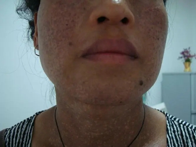 焦油性黑变病表现为弥漫分布的色素斑,斑片颜色较深,呈灰褐色至深褐色,甚至是黑色,出现在脸上时严重影响外观,患者还会伴有头晕、乏力等表现。