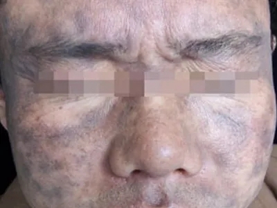 焦油性黑变病患者面部出现弥漫性色素沉着斑,颜色多为青灰色、黑色,与正常皮肤边界不清,并逐渐累及全脸,影响外观,还可造成心理不适。