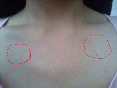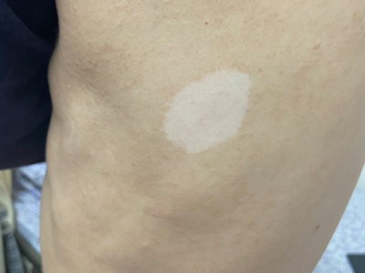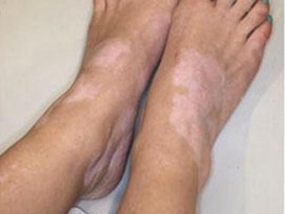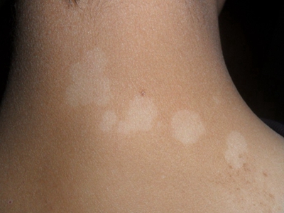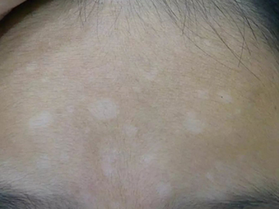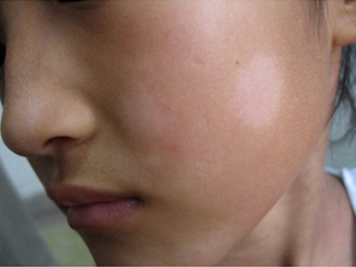 贫血痣的典型症状为瓷白色白斑,有时出现卫星灶,即指较小、密度较低、边缘模糊的斑片状白斑,患者额头处皮肤既不萎缩,也不隆起,无自觉症状。