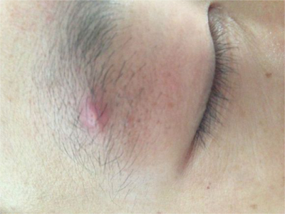 皮脂腺上皮瘤眉毛处圆形红疙瘩图