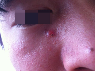 皮脂腺上皮瘤面部一个大红疙瘩图