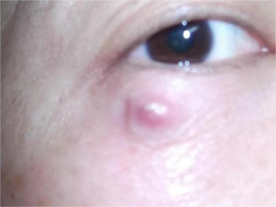 皮脂腺上皮瘤眼下一个红疙瘩顶端有脓点图