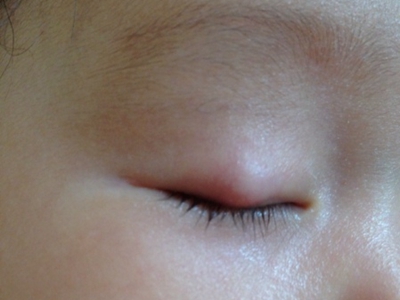 皮脂腺上皮瘤患儿上眼睑出现一个疙瘩,中间为皮色,周围发红。该疙瘩直径小于1cm,发生在该处比较少见,建议及时遵医嘱进行治疗。