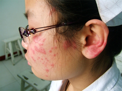 寒冷性多形红斑发生于暴露在外的部位,如面部,患处出现肿胀性红斑,并伴有水疱、糜烂、结痂,痒痛明显,可在医生指导下应用药物进行治疗。