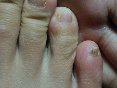 寒冷性多形红斑可以发生在脚趾部位,皮损为暗红色丘疹或紫红斑,在水肿的中央有水疱,可发生糜烂、渗液,临床症状明显时,口服或外用维生素E,皮损可自然消退。