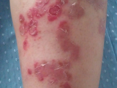 寒冷性多形红斑双小腿长了很多扁疙瘩有结痂图