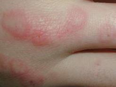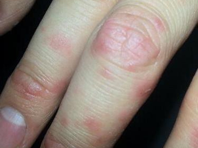寒冷性多形红斑好发于暴露部位,如手指部位,临床可见圆形红斑、风团等多形皮肤损害,病损部位皮肤发红,局部紧张、发亮,多发于寒冷季节,患者应注意御寒保暖。