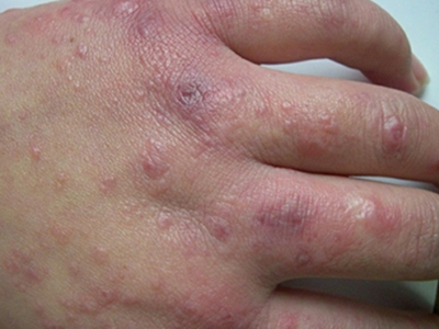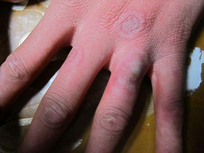 寒冷性多形红斑手背上的红斑水泡破了溃烂图