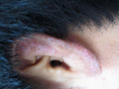 寒冷性多形红斑耳廓皮肤有粉白色斑起皮图