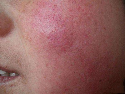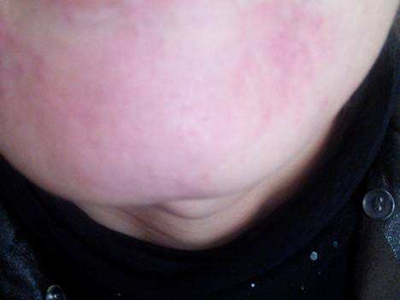 寒冷性多形红斑起初表现为面部皮肤暴露部位发红,颜色为浅红色,像是有大小不一的红斑,中间穿插着正常的皮肤,随着病情的发展会出现弥漫性红斑或丘疹。