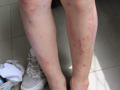 寒冷性多形红斑的典型症状是在双小腿出现大量的扁平红疙瘩,大小不等,独立或聚集分布,并在皮肤表面温度升高后出现瘙痒感,反复搔抓会抓破皮肤出现抓痕和血痂。