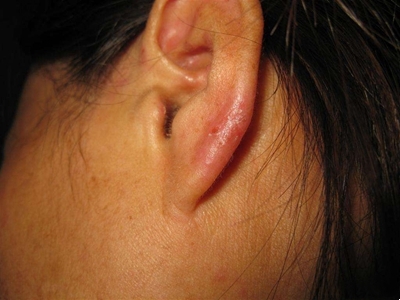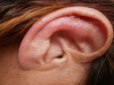 寒冷性多形红斑左耳耳垂红肿破了起皮图