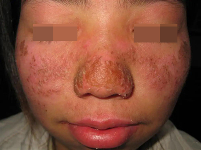 寒冷性多形红斑脸上都是红褐色斑还有结痂图