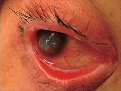 偶可并发卡他性边缘性角膜浸润或溃疡(多见于流感嗜血杆菌型感染)。 Koch-Weeks杆菌或肺炎双球菌性结膜炎患者一般为双侧性,结膜高度充血和水肿,可发生结膜下出血斑点,常伴有体温升高、身体不适等全身症状。