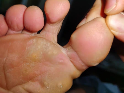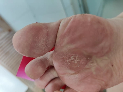 胼胝的皮损一般表现为皮肤角质增厚,呈淡黄色,边界不清,表面皮纹清晰,皮损表面有明显的脱皮现象,有时在手指部见到,多无自觉症状。