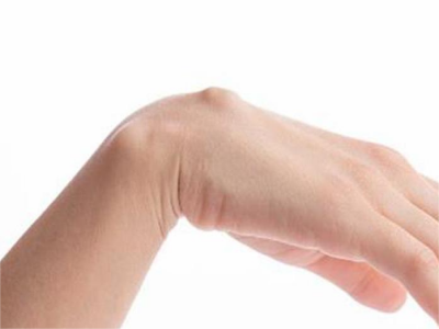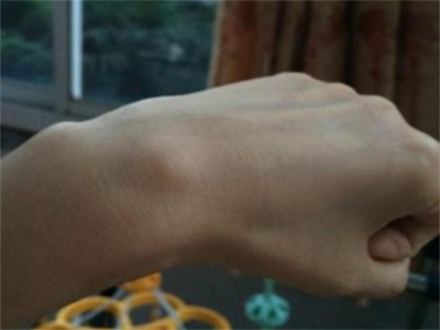 手腕腱鞘囊肿症状严重时,在患者右手腕背部见明显凸出于皮面的半球形肿块,直径1-2cm,少数患者按之有酸胀、疼痛或自觉无力感。