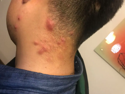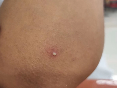 疖好发于头面部、颈部和臀部。皮损初起为毛囊性炎性丘疹,基底浸润明显,后炎症向周围扩展,形成质硬结节,伴红肿热痛。数天后中央变软,有波动感,顶部出现黄白色点状脓栓。脓栓脱落后有脓血和坏死组织排出,炎症逐渐消退而愈合。