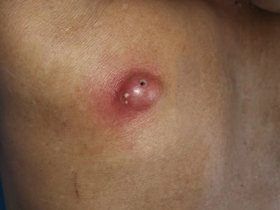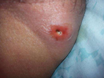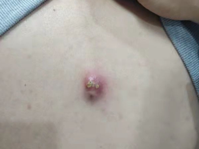 2、排脓治疗:疖顶已有脓头时,可在其顶部点涂苯酚;如有波动应及早切开引流;对未成熟的疖禁忌挤压,以免引起感染扩散。