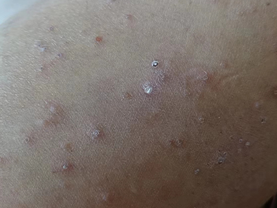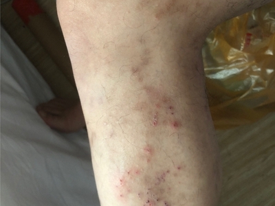 慢性湿疹背部皮肤粗糙有点状血痂图