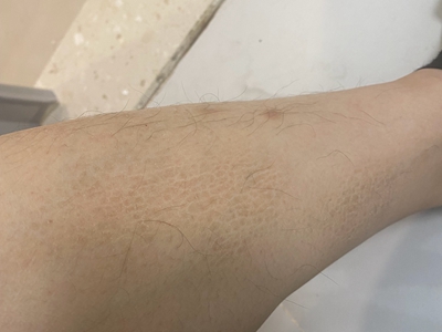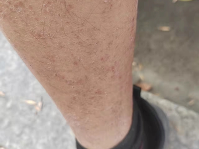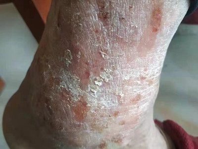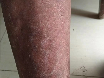 慢性湿疹脚踝皮肤暗红还大片脱皮图