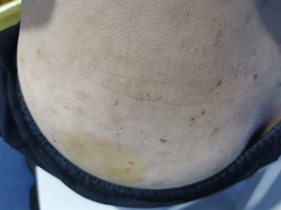 慢性湿疹背部皮肤有红疙瘩和褐斑图