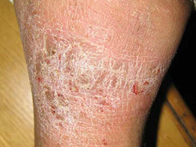 慢性湿疹脚踝附近有大块厚厚的痂皮图