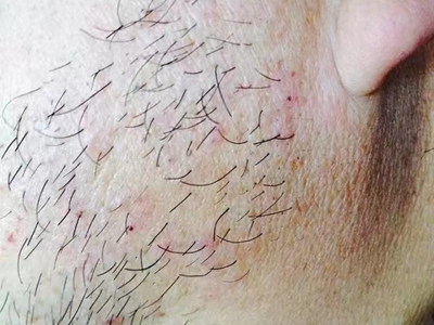 慢性湿疹患者头皮上出现多条数厘米,宽约5mm的抓痕,表面形成红褐色的痂皮,主要是由该疾病瘙痒明显,不自觉使用手抓挠头皮而造成,本病容易反复发作。