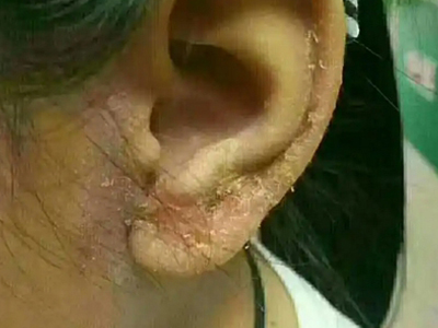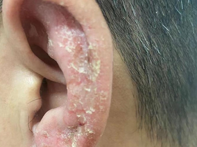 慢性湿疹耳廓上长了密密麻麻的白色鳞屑图