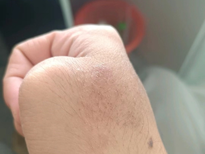 慢性湿疹发生于脚踝时,局部皮肤出现明显的苔藓样改变,表现为皮肤增厚、粗糙,患者穿袜子时自觉有摩袜子的感觉,同时患处伴有明显的痒感。