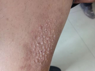 慢性湿疹表现为脚踝后侧出现散布的小丘疹,丘疹顶端附着白色皮屑,常引起慢性进行性苔藓样改变,同时伴有明显瘙痒感,搔抓后皮屑脱落。平时应以宽松透气的鞋子为主。