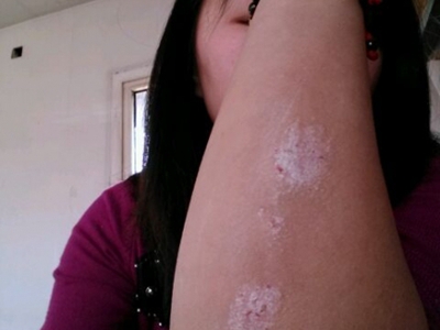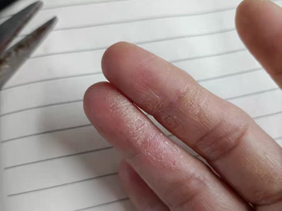 慢性湿疹表现为皮肤粗糙,并有细小的鳞屑附着,搔抓导致掉皮现象,同时掉皮处露出淡粉红色的皮肤,病损处边界并不清晰,甚至逐渐发生扩散。