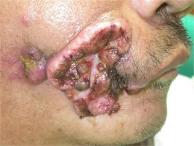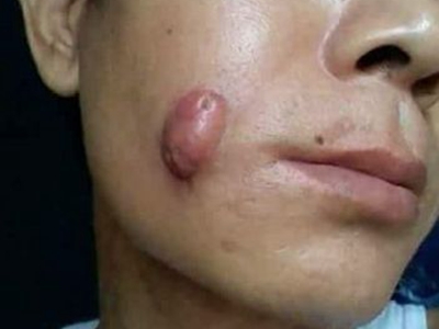 颊癌嘴角旁边的脸颊出现肿块糜烂结痂图