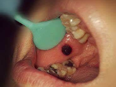 颊癌部分患者起初会在颊黏膜上出现黑色的疙瘩,呈半球形,黄豆大小,明显凸起于黏膜表面,边界清晰,周围有淡淡的红晕,随着病情发展会逐渐增大甚至破溃。