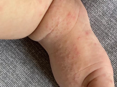 干燥型婴儿湿疹腿上有很多红疙瘩脱屑图