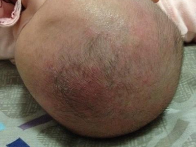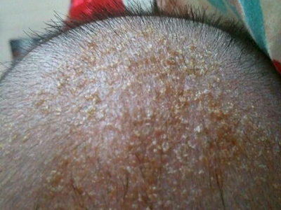干燥型婴儿湿疹头皮有一大片黄皮覆盖图