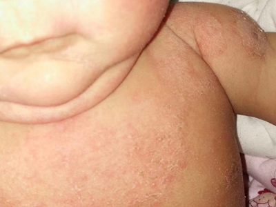 干燥型婴儿湿疹胸部有红斑脱皮图