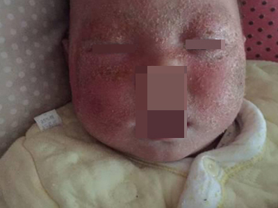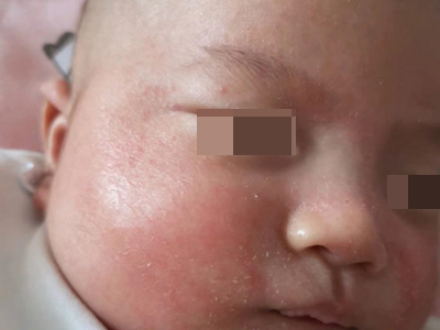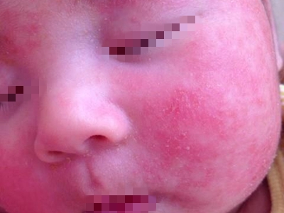 干燥型婴儿湿疹面部大片红斑上面脱屑图