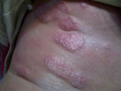 干燥型婴儿湿疹胸部有红斑鳞屑图